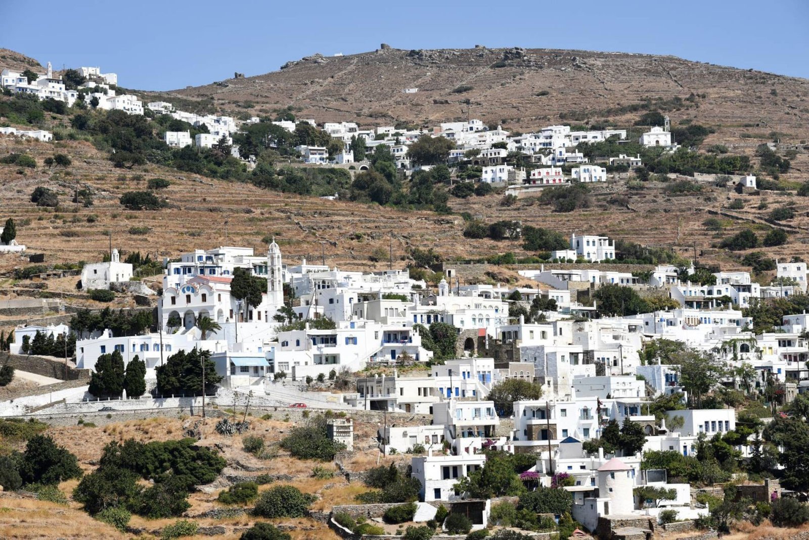 Dyo Choria are the settlements once separated by a little river, which later formed a beautiful village. The signs of Middle Ages are obvious here, too. Situated at an altitude of 450m above sea level, it is considered another “balcony of Tinos”. Thanks to its location on a green and fertile hillside, there are many natural resources, the so-called “xynaria”, as well as a centenarian plane tree standing on its big square.